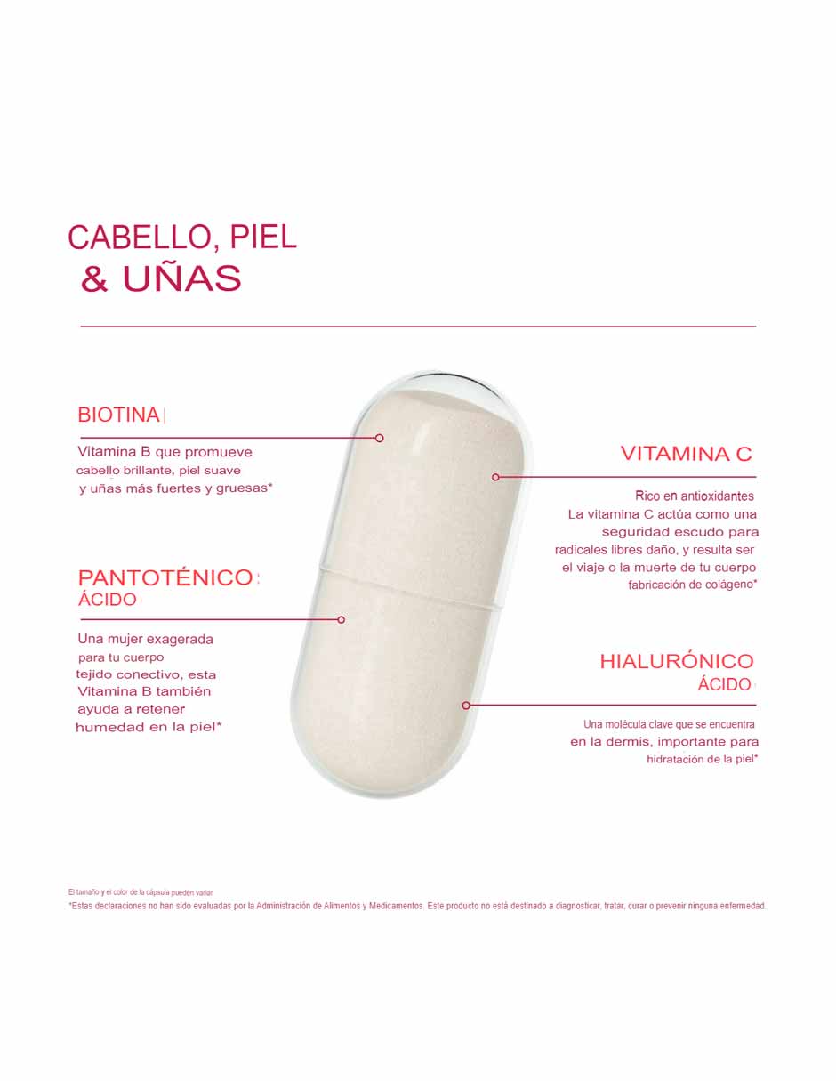 Es tu momento de brillar, con una mezcla de rosa mosqueta, aloe vera y ácido hialurónico especialmente formulada para iluminar la piel y apoyar la salud de tu cabello, piel y uñas. Una alternativa vegana a muchos otros suplementos de belleza, Hair, Skin & Nails tiene un alto contenido de biotina, vitamina A y vitamina C antioxidante, lo que garantiza un mínimo alboroto y un máximo de elogios.
