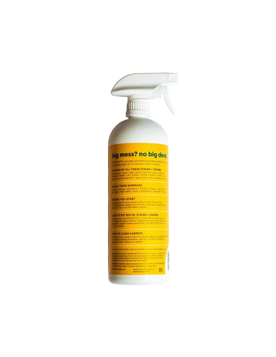 Nuestro quitamanchas y olores multiusos instantáneo es la solución ideal para las manchas y olores de orina de mascotas. Elaborado con una nueva apariencia y una fórmula completamente nueva, nuestro Quitamanchas y Olores Instantáneos es incluso más efectivo que la fórmula original, eliminando manchas y olores difíciles más rápido que antes. ¡Con un 33% más de enzimas que la fórmula original, la nueva fórmula hace que este quitaolores y manchas sea aún mejor! En lugar de enmascarar los olores, nuestra fórmula única los neutraliza y elimina, proporcionando una limpieza profunda que evita futuros "accidentes", ayuda a educar a nuevas mascotas y facilita el cuidado de mascotas mayores con incontinencia. KIDS 'N' PETS es completamente seguro para personas, mascotas y plantas. Ya sea que esté enseñando a sus hijos pequeños a ir al baño, enseñando a un gatito nuevo a usar la caja de arena o cuidando a su amado perro anciano, tenemos la solución para todo propósito, para todas las ocasiones y para todo tipo de desorden.