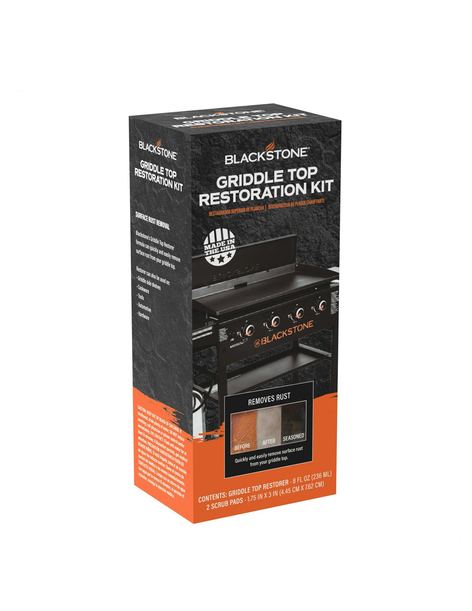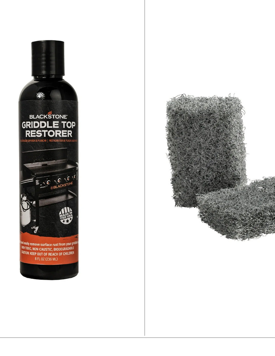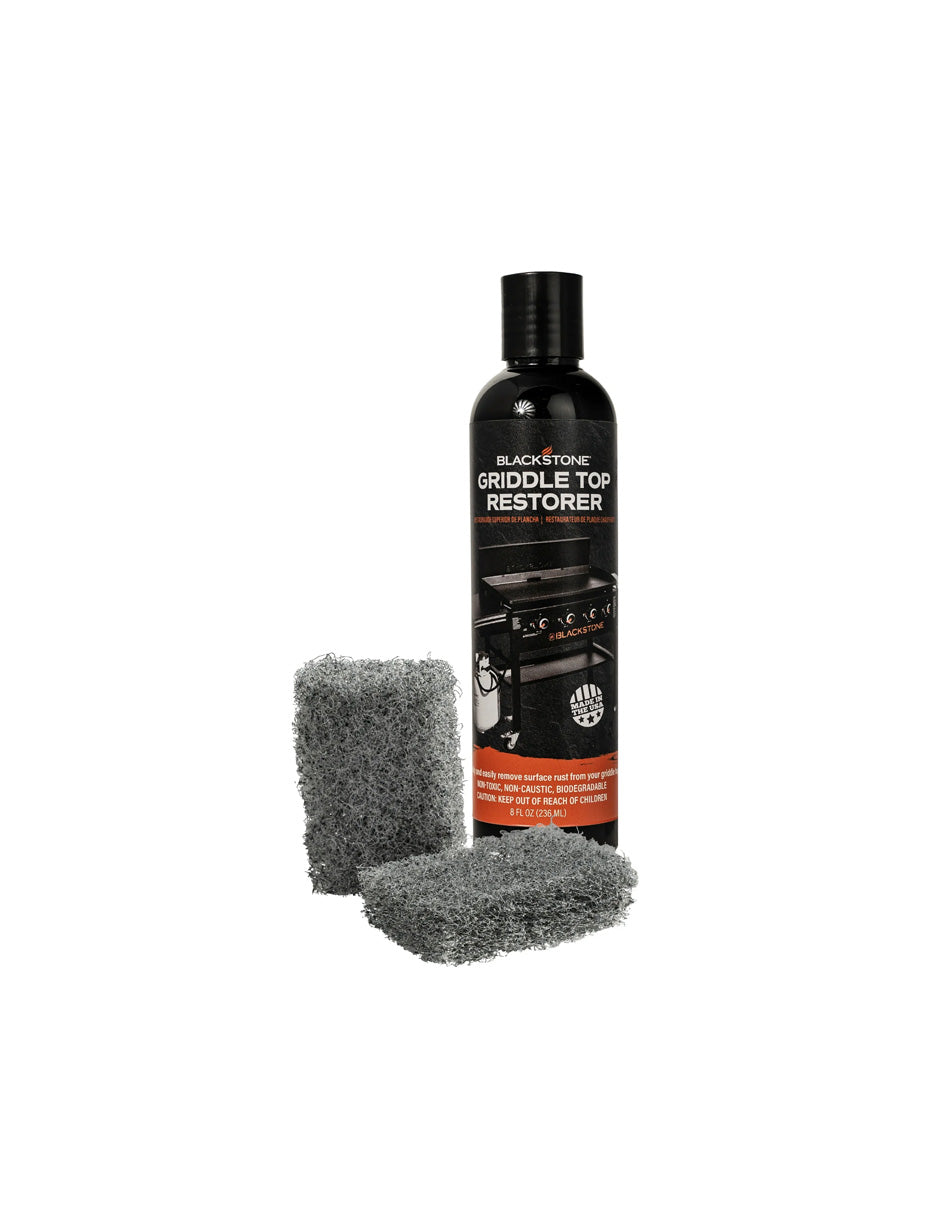 Revive tu plancha con el restaurador Blackstone. Incluye 8 oz de fórmula restauradora y 2 pads aplicadores. Remueve óxido en solo 5 pasos.