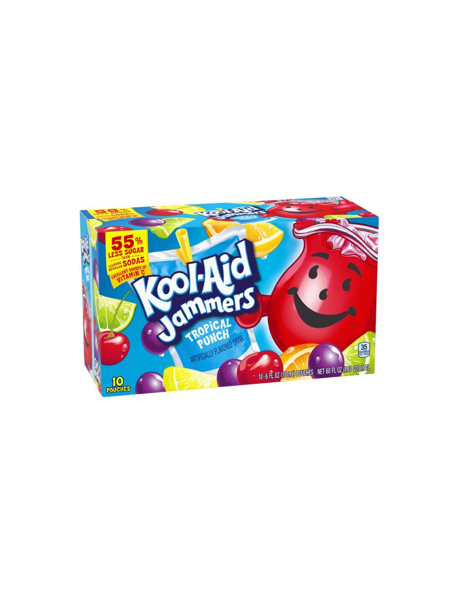 - Diez bolsas de 6 onzas líquidas de Kool-Aid Jammers Bebida de ponche tropical con sabor artificial