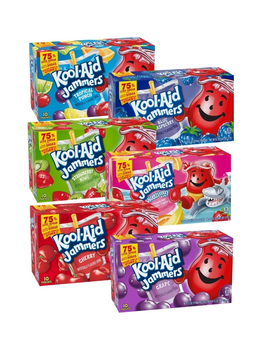 - Las bebidas de ponche tropical con sabor artificial de Kool-Aid Jammers están llenas de sabores divertidos