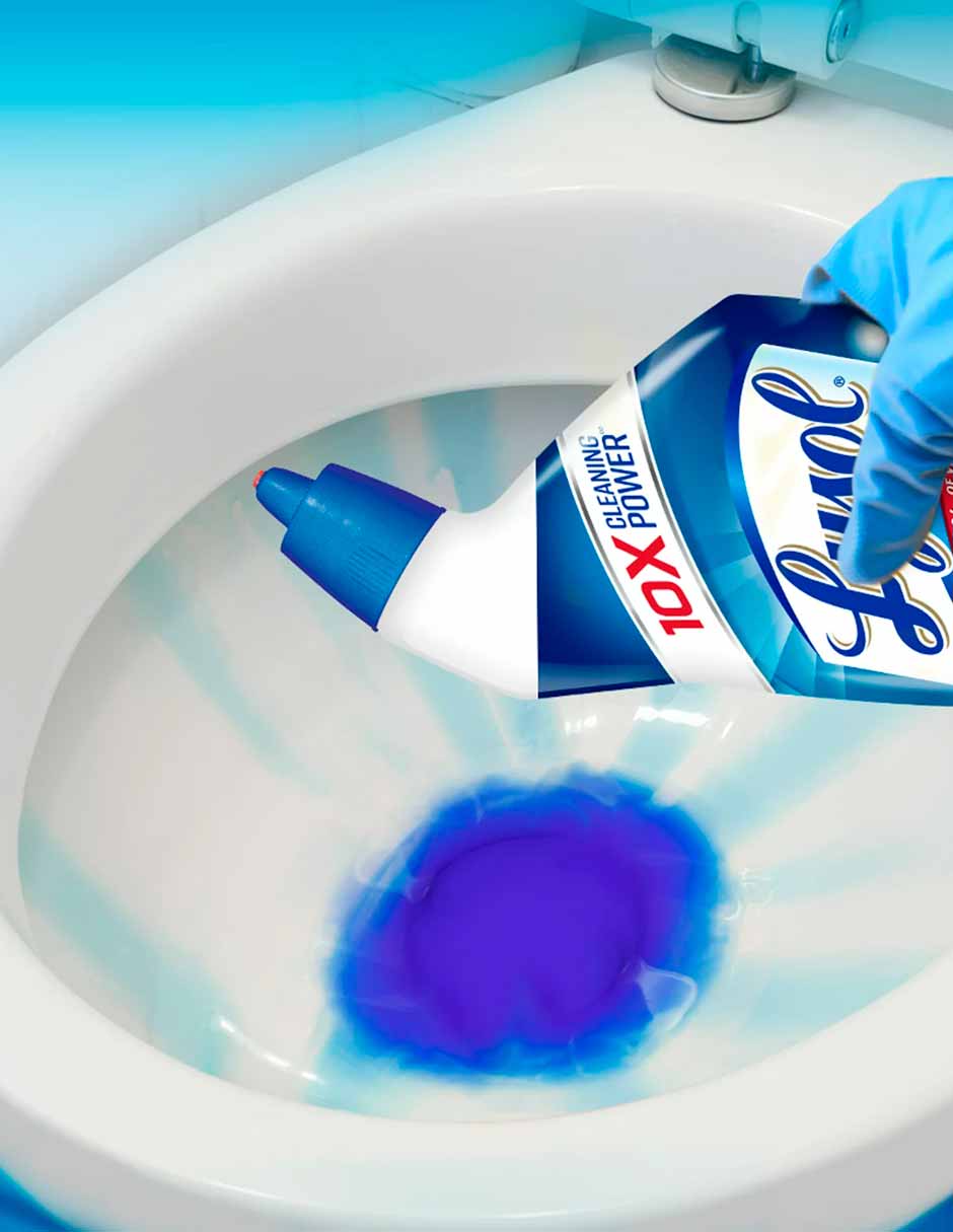 El limpiador de inodoros Lysol limpia y desinfecta los inodoros. La fórmula espesa se adhiere al recipiente para una mejor limpieza. El limpiador líquido para inodoros Lysol mata el 99,9% de los virus y bacterias con un poder de limpieza completo. La botella en ángulo apunta a áreas difíciles de alcanzar, incluso debajo del borde, para dejar toda la taza del inodoro reluciente, desodorizada y desinfectada.