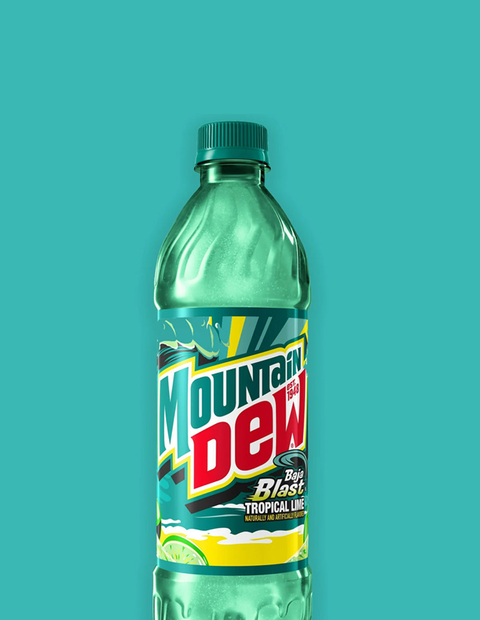 El refresco MTN DEW no tiene por qué ser verde. Nuestra amplia colección de sabores tiene algo para todos. Prueba el refresco Mountain Dew Baja Blast.