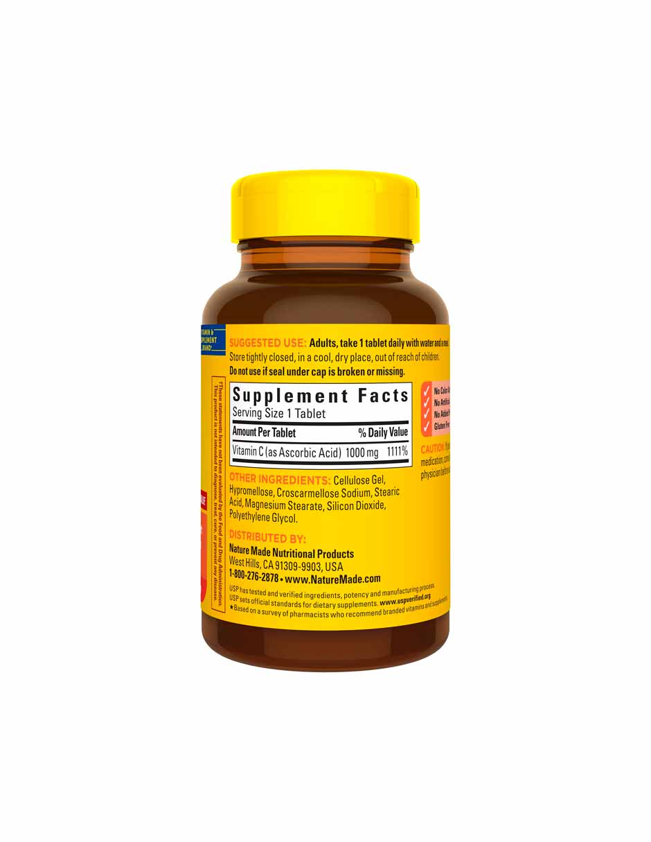 - Cada tableta Nature Made Vitamin C 1000 mg ayuda a reforzar el sistema inmunológico y proporciona apoyo antioxidante.