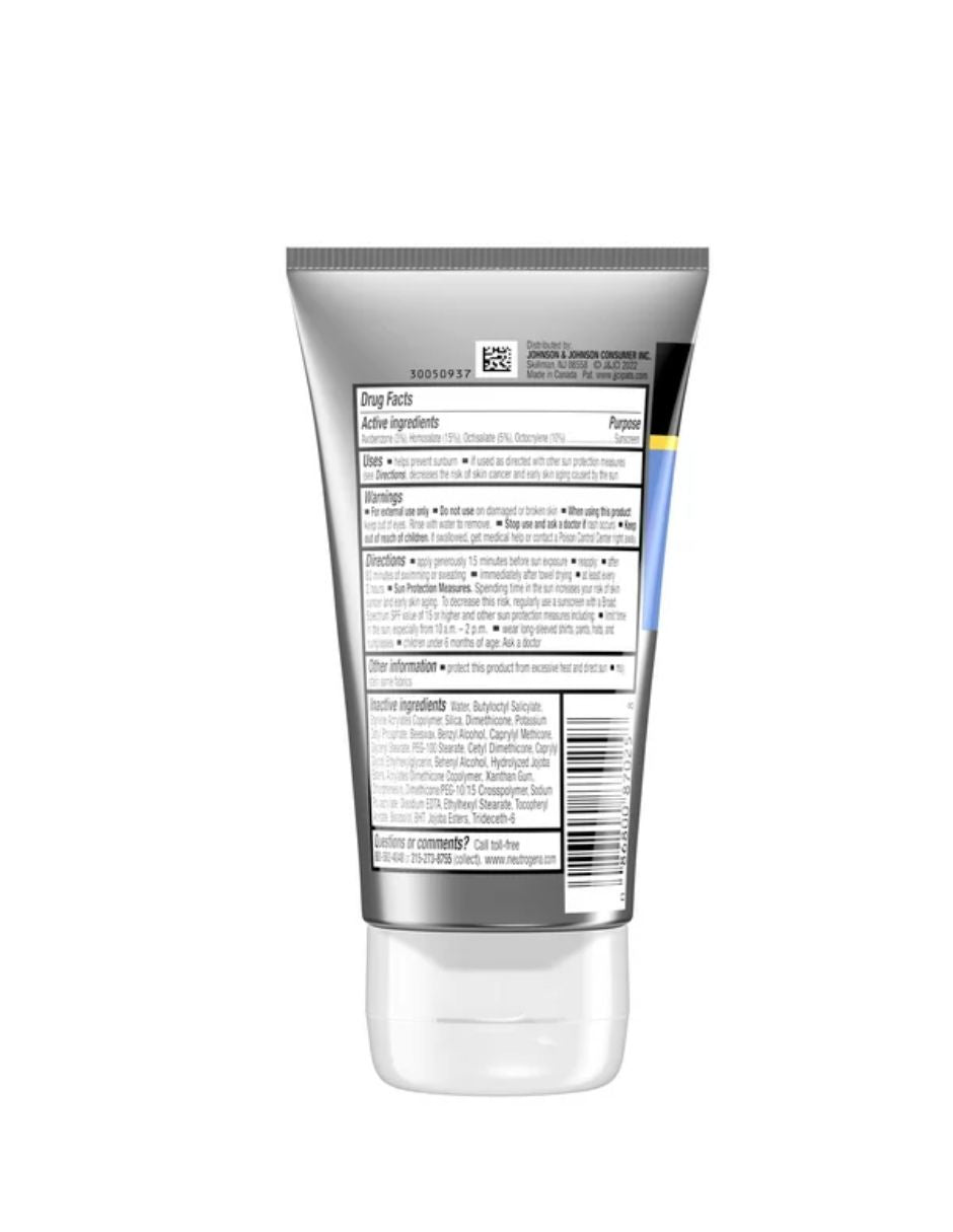 Juega y suda mucho al aire libre bajo el sol con Neutrogena Sport Face Sunscreen Lotion with Broad Spectrum SPF 70+. Ideal para actividades vigorosas y activas al aire libre, este protector solar facial resiste el desgaste del agua, el roce, el sudor o la limpieza. Este protector solar deportivo ha sido formulado con el exclusivo Helioplex, una tecnología de protección solar con una protección superior de amplio espectro contra los rayos UVA que envejecen la piel y los rayos UVB que queman la piel. Esta loción de protección solar facial es resistente al agua y al sudor, y cuenta con un complejo de electrolitos para ayudar a nutrir la piel. Cuando se usa según las indicaciones con otras medidas de protección solar, este protector solar activo puede ayudar a disminuir el riesgo de cáncer de piel y el envejecimiento prematuro de la piel causado por el sol. Neutrogena Sport Face Lotion no contiene PABA ni aceite, y no obstruirá los poros ni causará brotes.