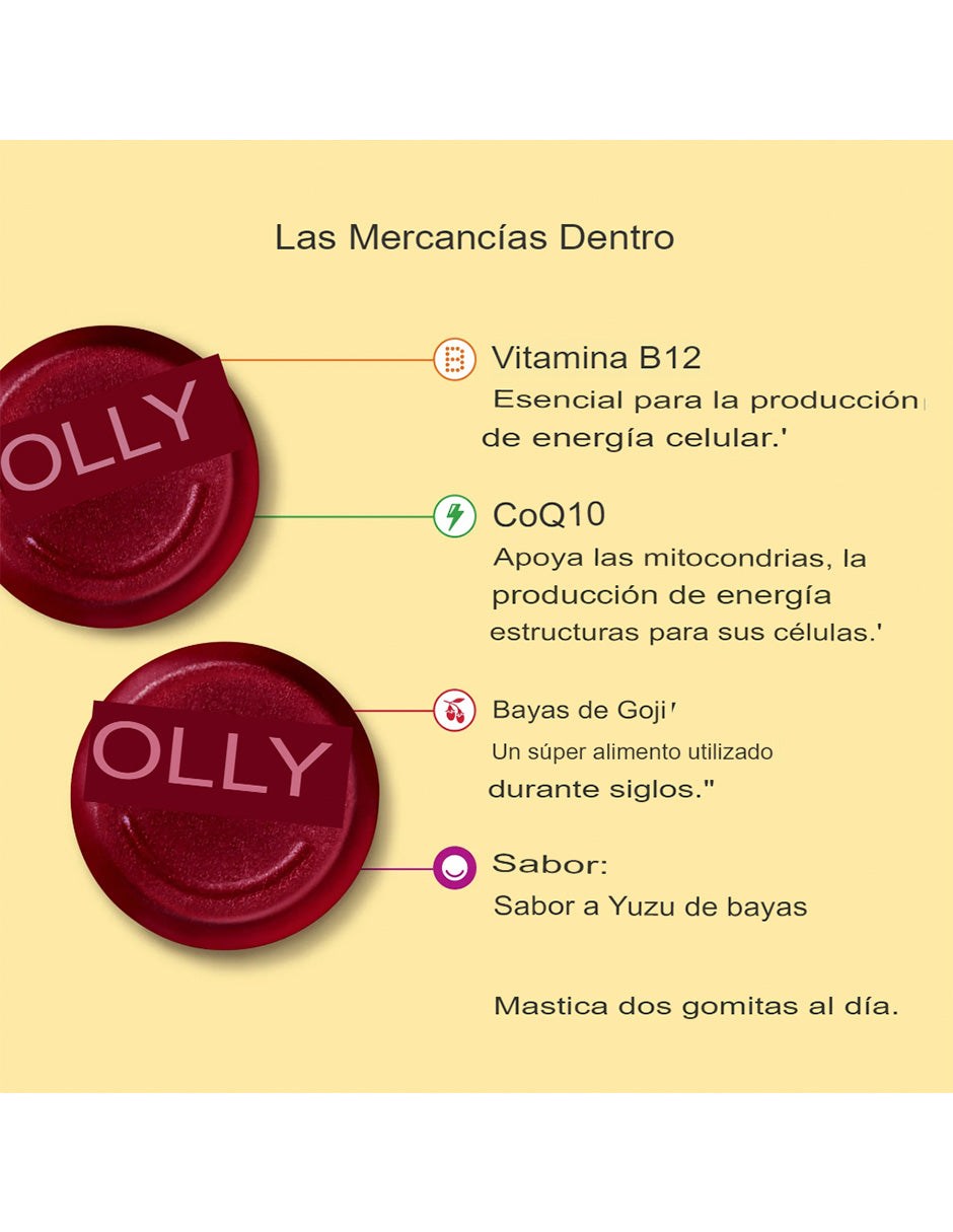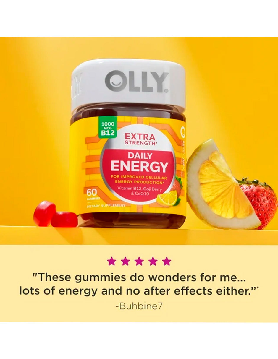 OLLY Suplemento de Energía Diaria Extrafuerte con CoQ10 y B12, sin Cafeína, 60 gomitas