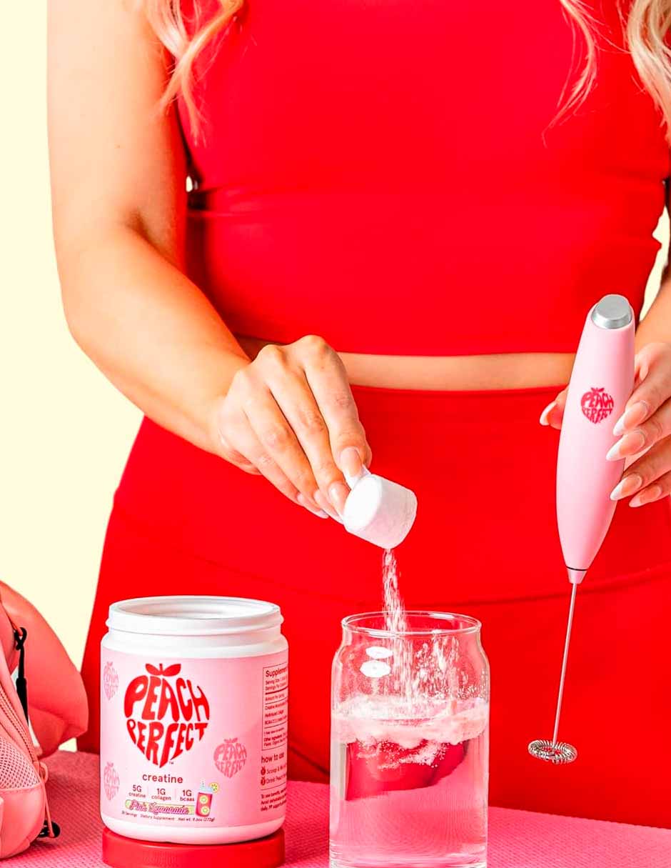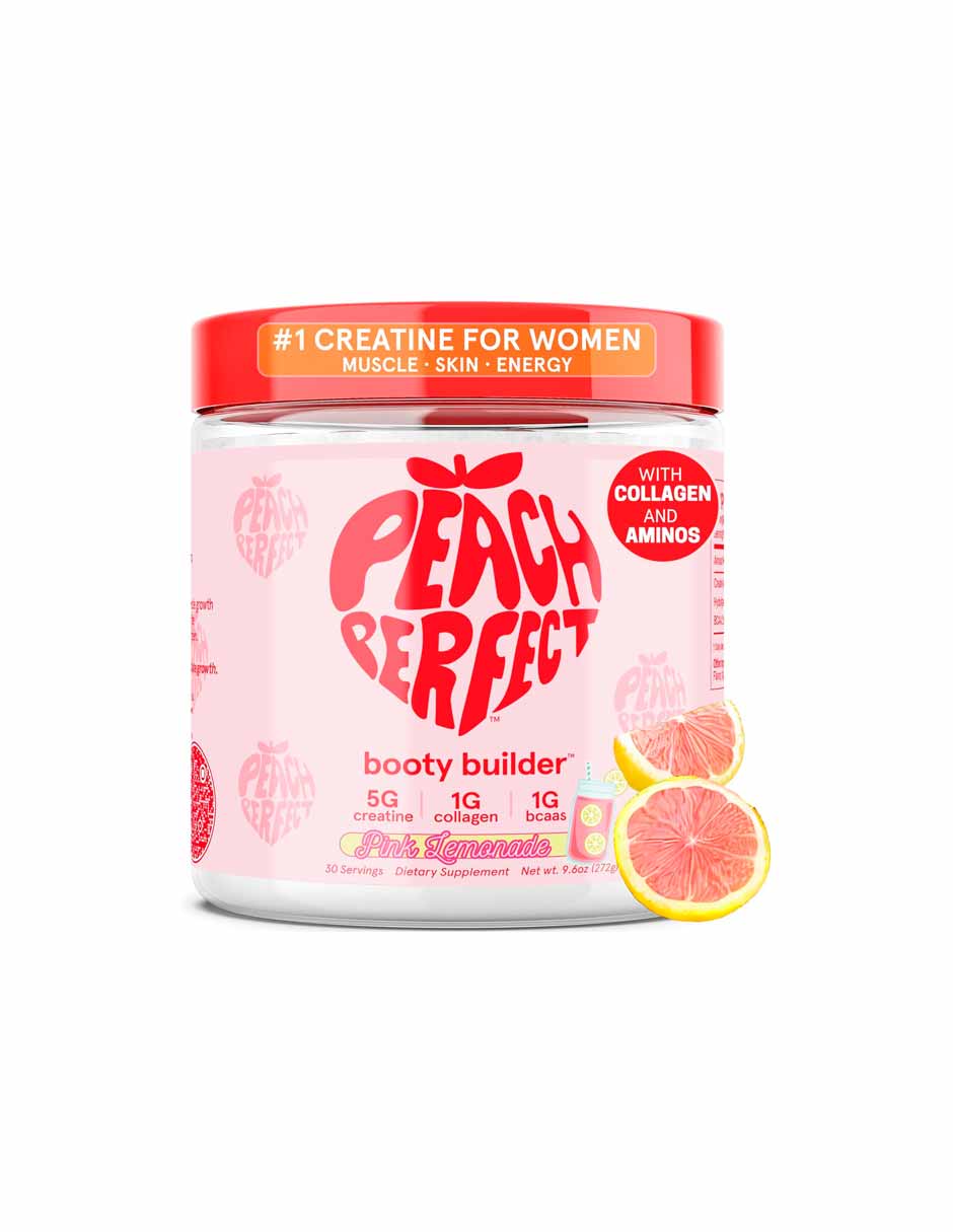 Peach Perfect es una mezcla única de monohidrato de creatina de la más alta pureza para el apoyo de glúteos y músculos, BCAA para apoyo muscular y colágeno para apoyo a la salud de la piel. Nuestro suplemento de creatina de melocotón está específicamente formulado para mujeres para ayudar a apoyar los músculos, particularmente en los glúteos y los glúteos.
