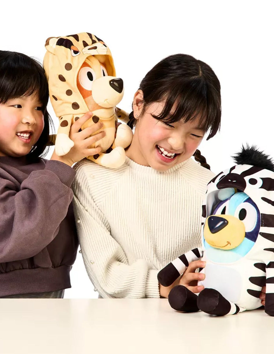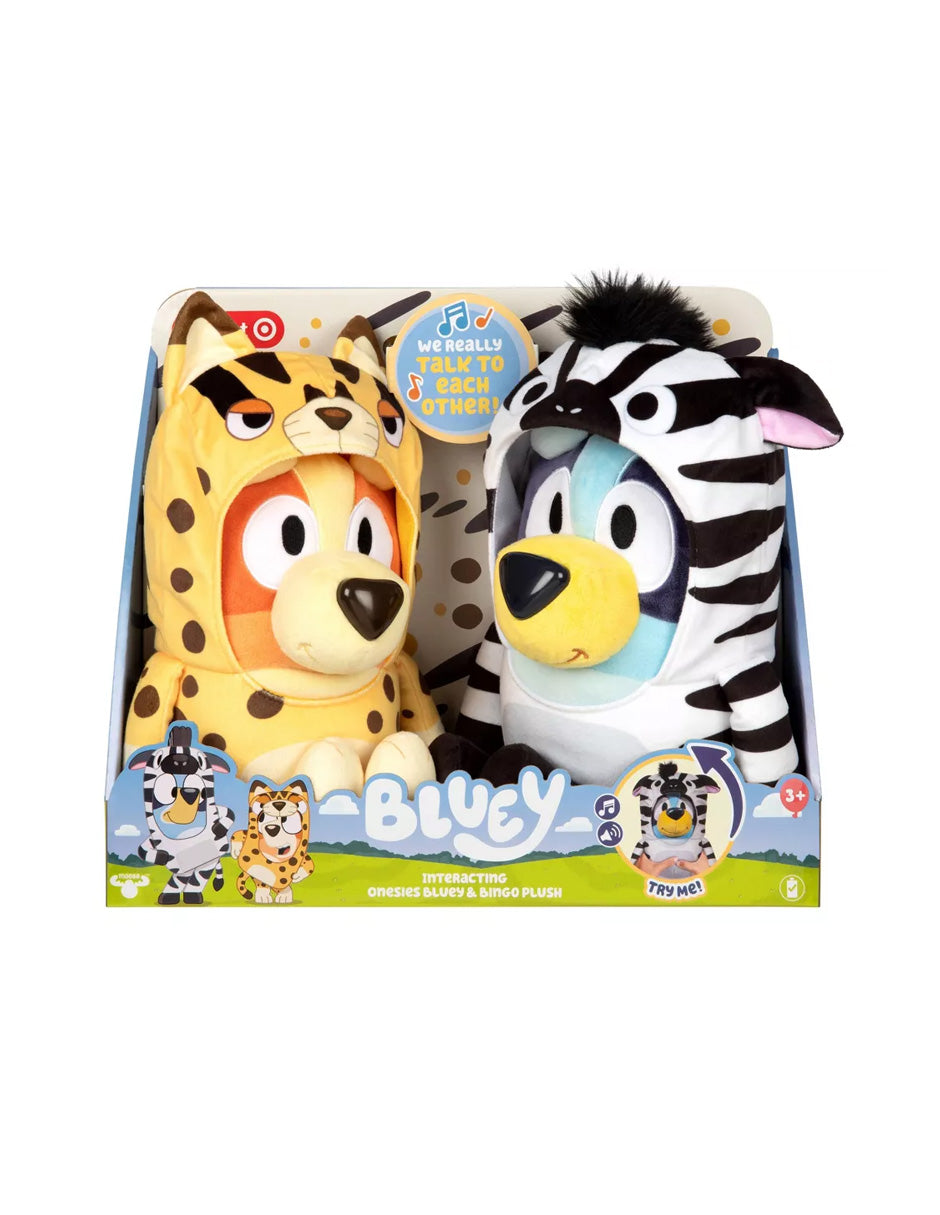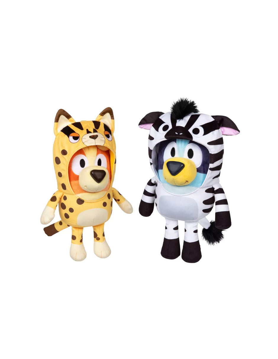 ¡La hora de dormir se vuelve una fiesta con Bluey y Bingo! Este adorable set incluye 2 peluches interactivos vestidos con pijamas de cebra y guepardo. Tienen dos modos de juego: en Modo Individual puedes presionar su pancita para activar frases y canciones del programa, y en Modo Hermanos se comunican entre ellos para charlar, cantar y reír como en la serie. Son suaves, expresivos y perfectos para imaginar nuevas aventuras o recrear tus escenas favoritas. Un regalo ideal para pequeños fans de Bluey.