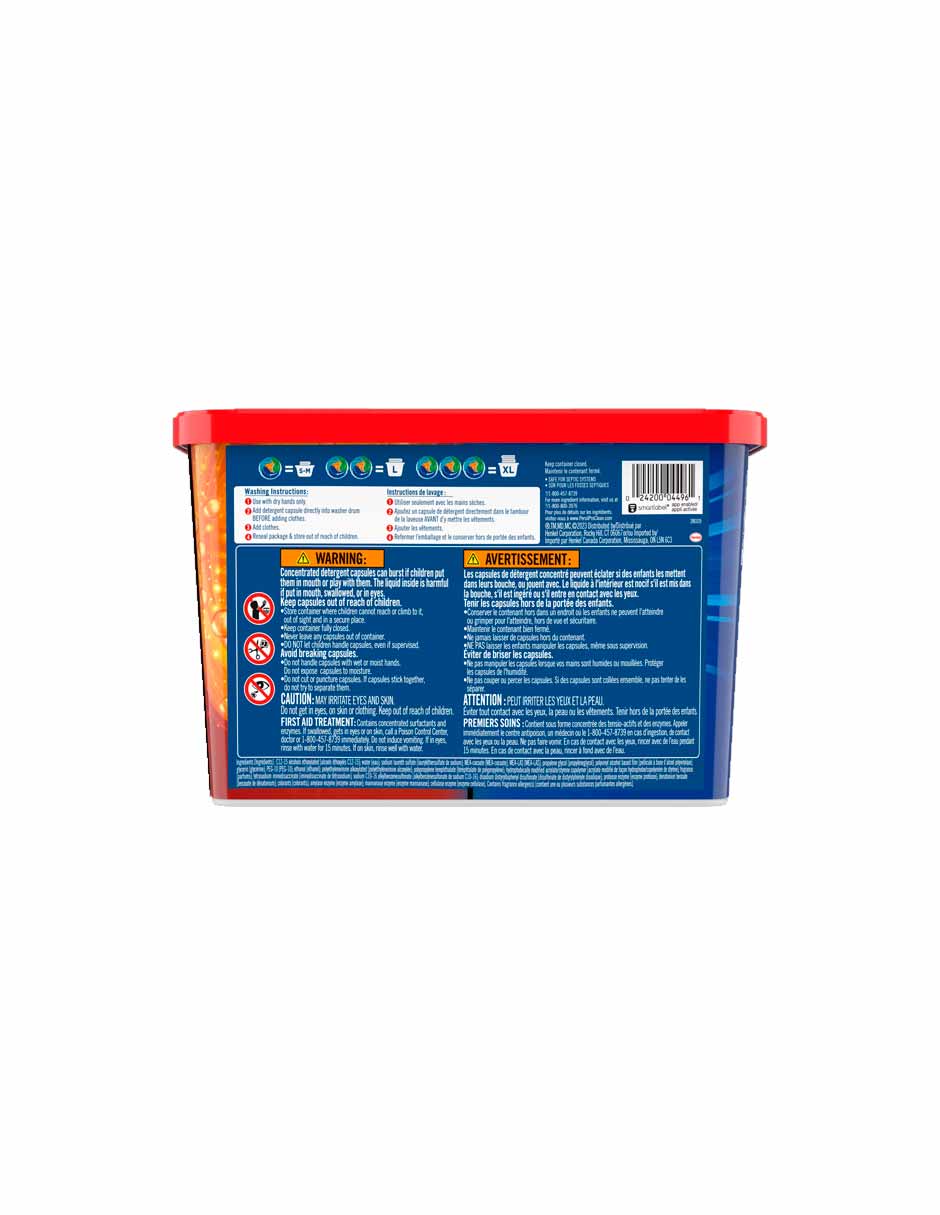 - Instrucciones: 1. Use solo con las manos secas. 2. Agregue la cápsula de detergente directamente en el tambor de la lavadora ANTES de agregar la ropa. 3. Agrega ropa. 4. Vuelva a sellar el paquete y guárdelo fuera del alcance de los niños.