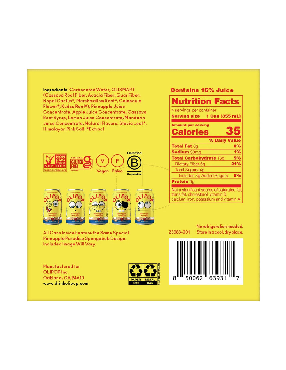 Refresco prebiótico OLIPOP Piña Bob Esponja 4 Pack