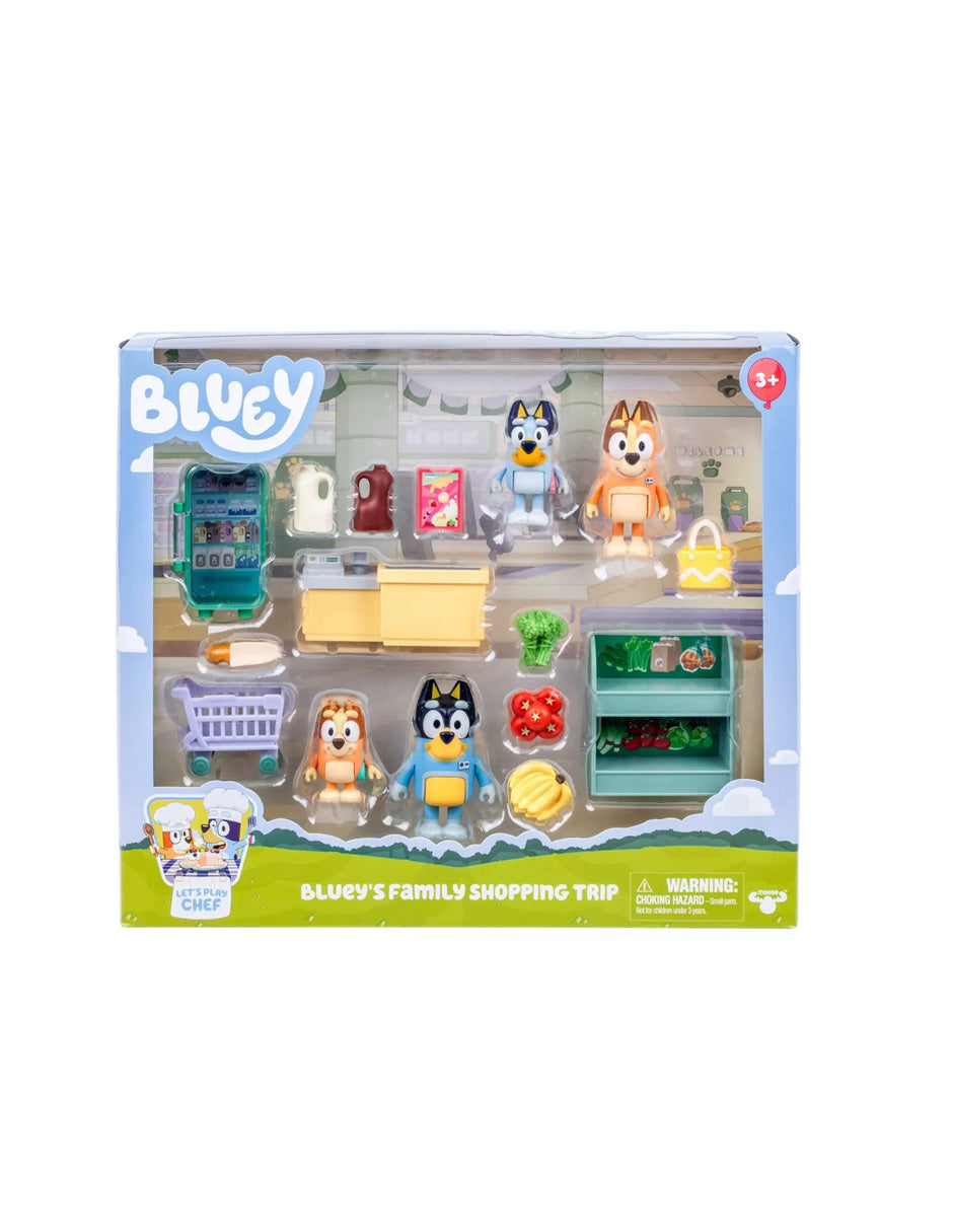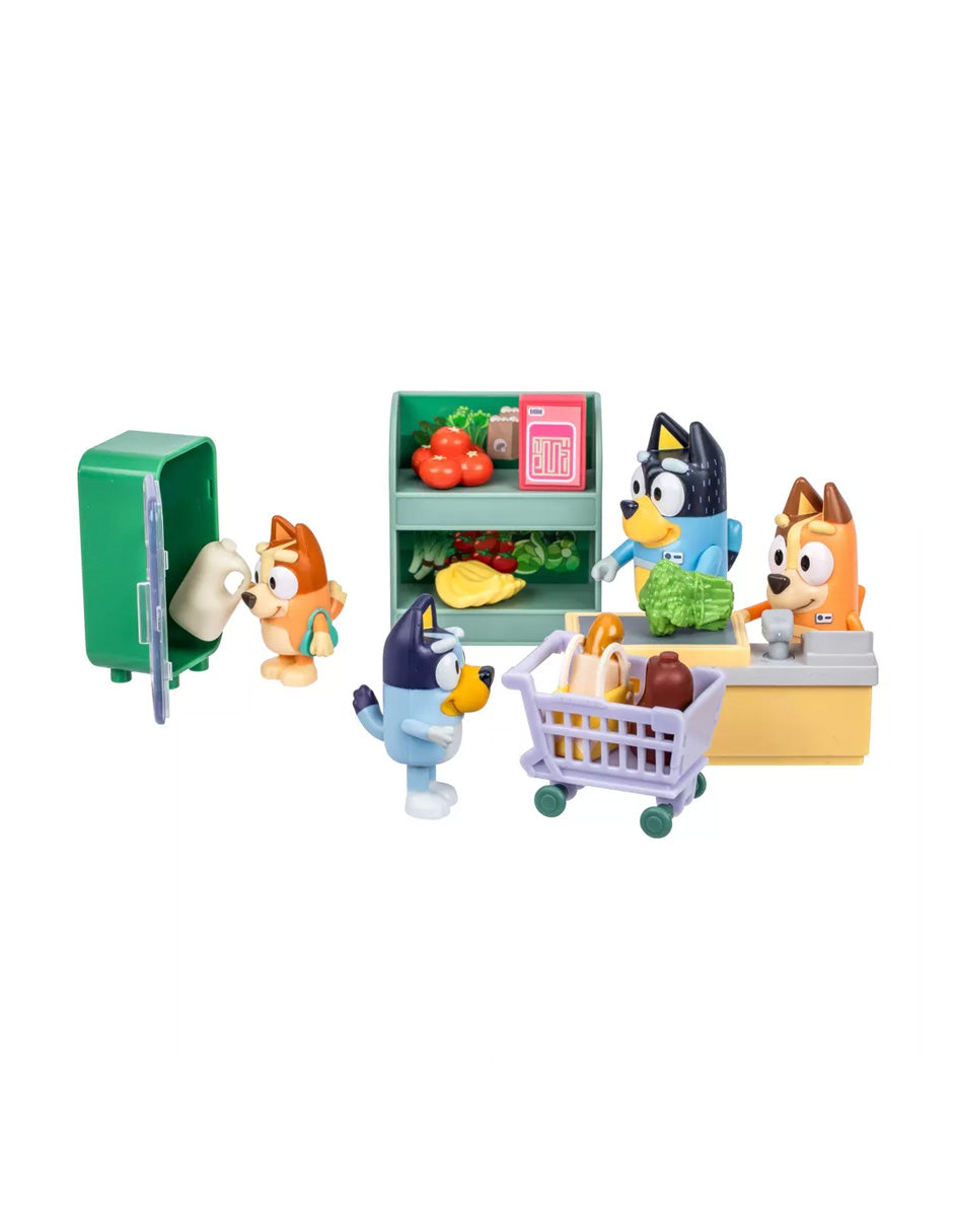 Set Bluey Compras en Familia con 4 Figuras y Accesorios