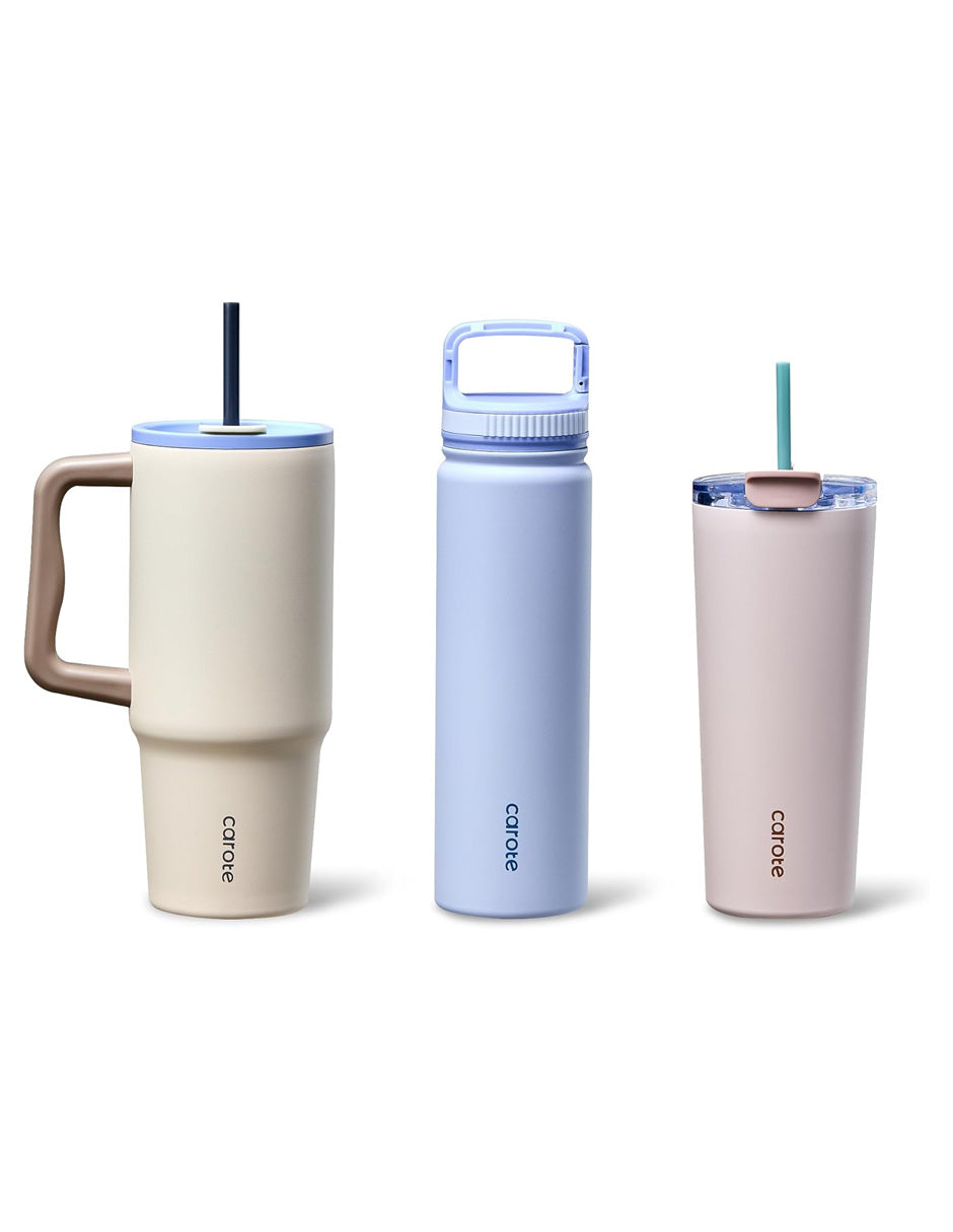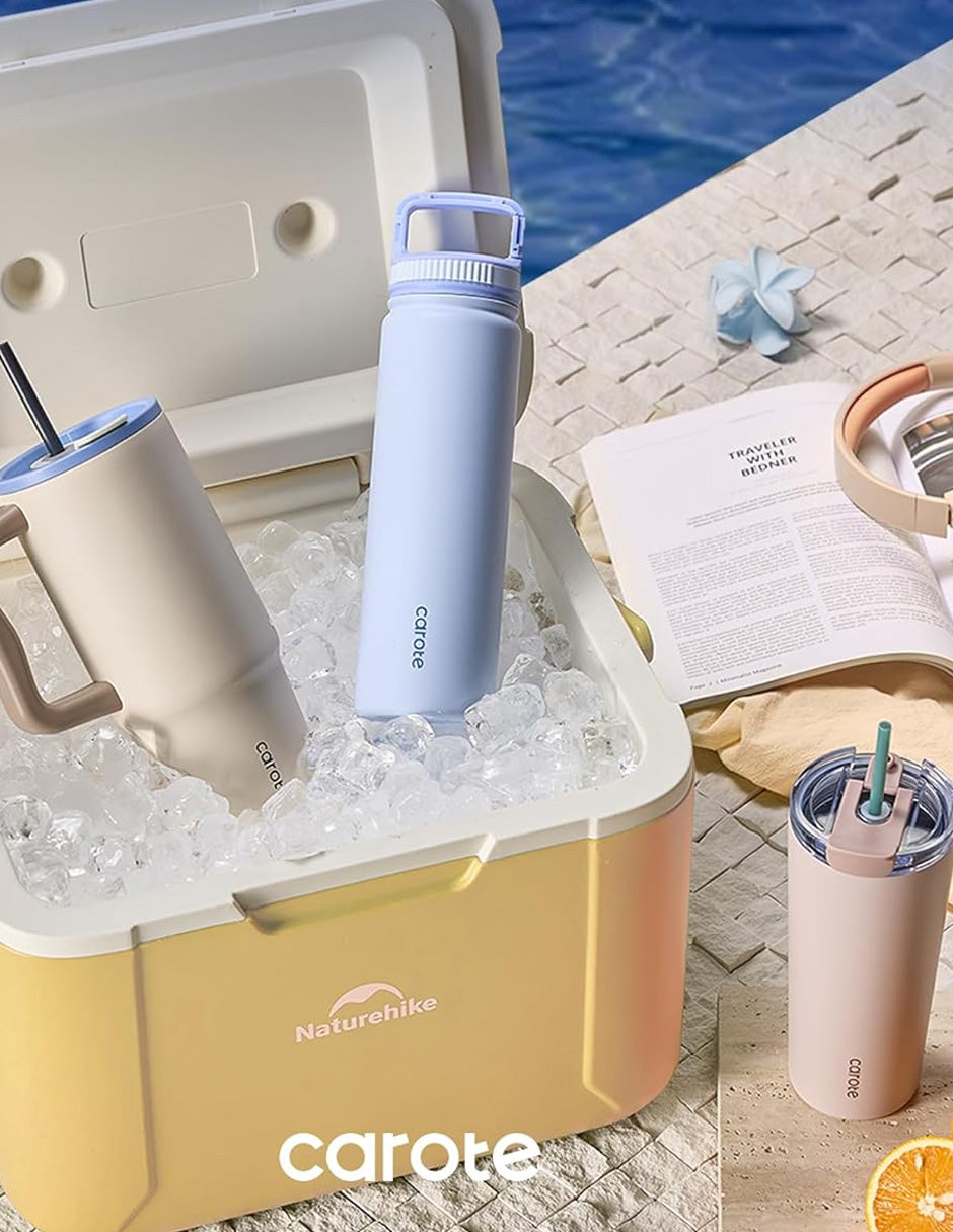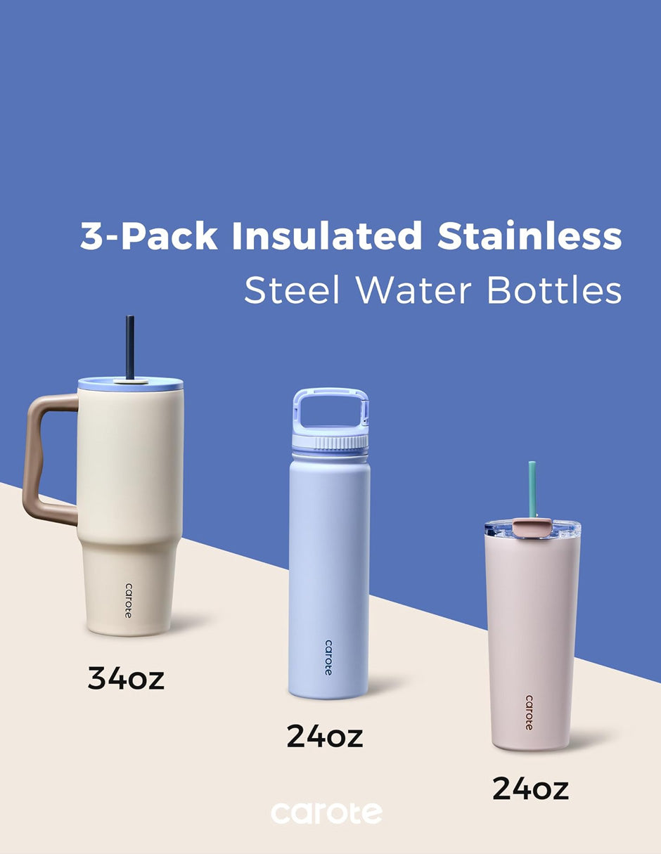 CAROTE presenta su juego inteligente de hidratación con 3 vasos térmicos de acero inoxidable: vaso de hielo de 34 oz, taza con mango de 24 oz y taza de café de 24 oz. Ideales para uso diario, oficina, gimnasio o exteriores. Tecnología de doble bebida: toma con popote o directo, con tapa higiénica y a prueba de fugas. Conserva bebidas frías hasta 24 horas gracias al aislamiento al vacío de doble pared. Hechos de acero inoxidable 18/8 sin BPA, resistentes al óxido y fáciles de limpiar. Diseño ergonómico con acabado mate antideslizante, disponibles en colores modernos que combinan estilo y funcionalidad.