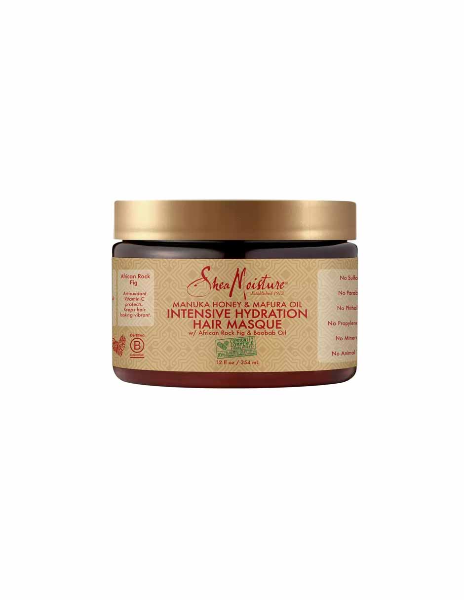 - Mascarilla capilar de hidratación intensiva: este tratamiento capilar de acondicionamiento profundo de SheaMoisture infunde al cabello una poderosa dosis de hidratación.