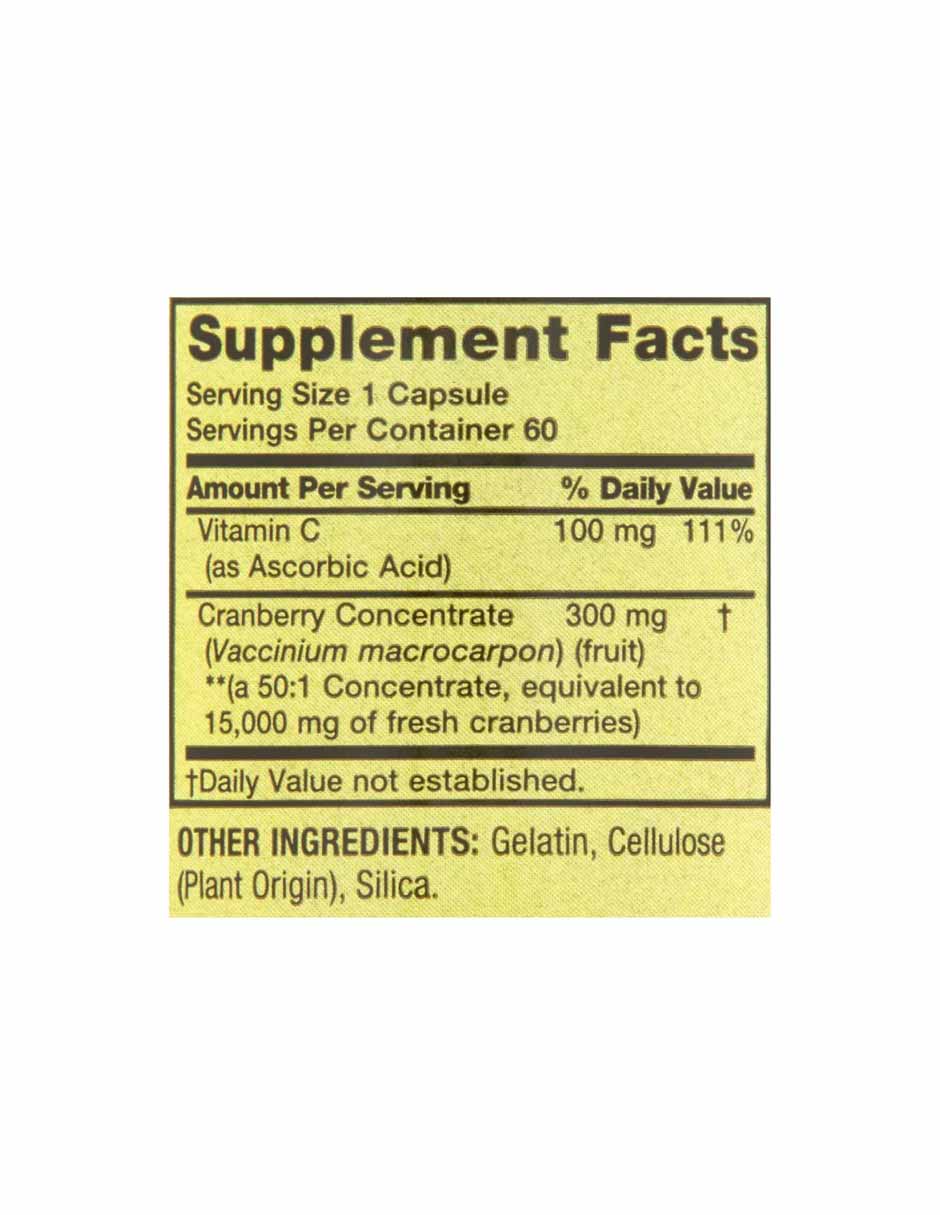 Contiene 300 mg de concentrado de arándanos por cápsula, un concentrado 50:1 equivalente a 15 000 mg de arándanos frescos