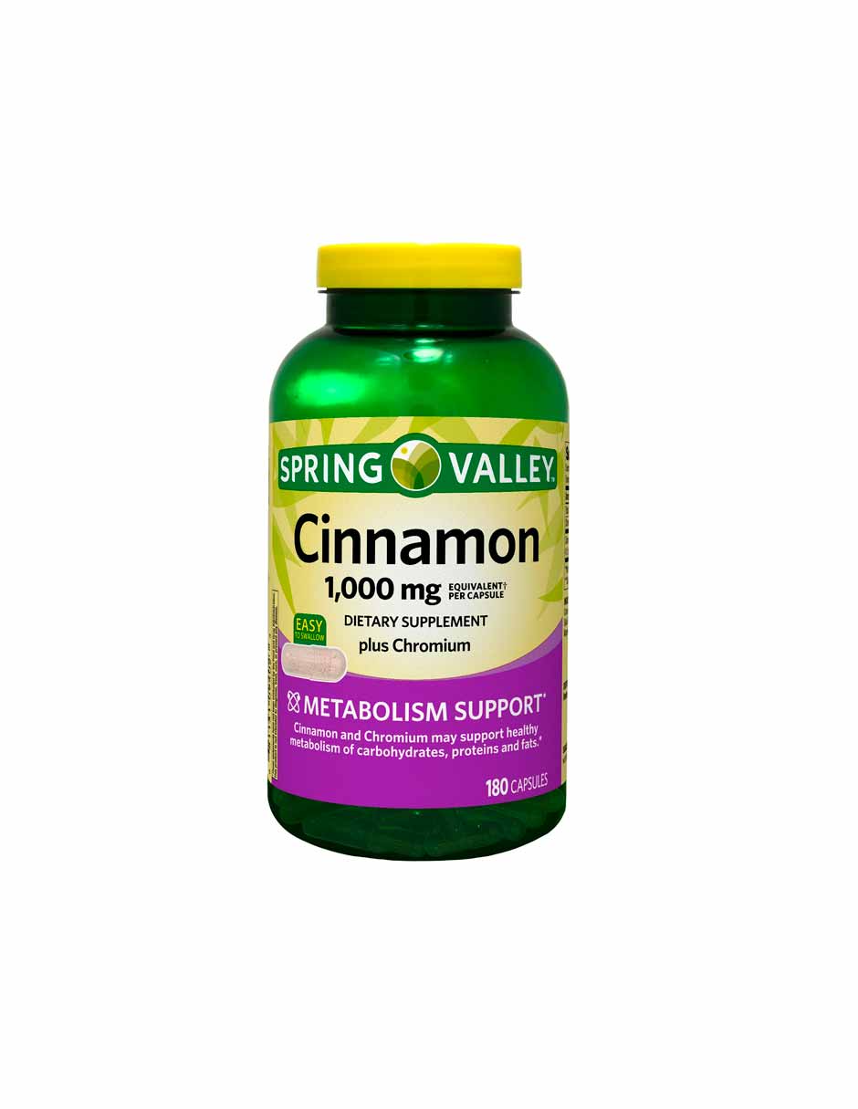 Spring Valley Cinnamon Plus Chromium Cápsulas Suplemento, 1000 mg, 180 unidades
