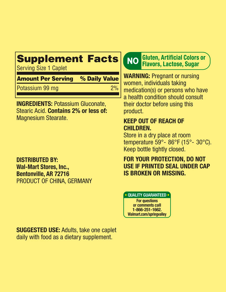 - Spring Valley Potasio Corazón Salud Suplemento Dietético Cápsulas, 99 mg, 250 unidades