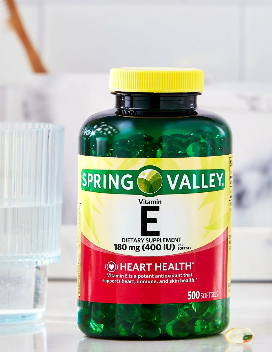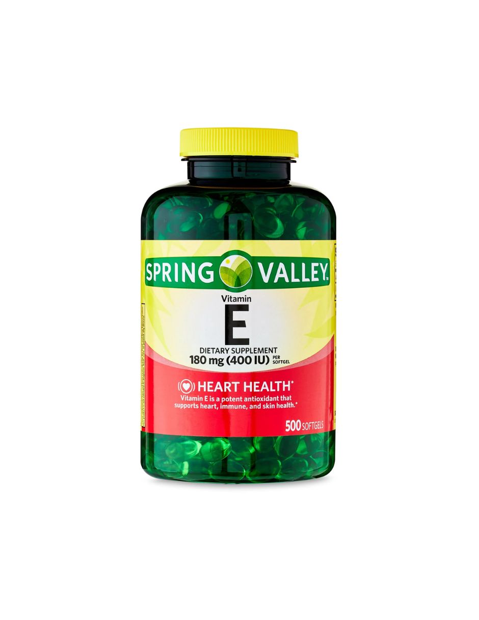 Nuestro suplemento dietético de vitamina E Spring Valley, 180 mg es un suplemento dietético que puede respaldar la salud del corazón, el sistema inmunológico y la piel.* Este suplemento no contiene gluten, lactosa, conservantes añadidos, colorantes, sabores ni sal añadidos. La dosis recomendada es 1 cápsula blanda al día con un vaso lleno de agua, preferiblemente después de una comida.