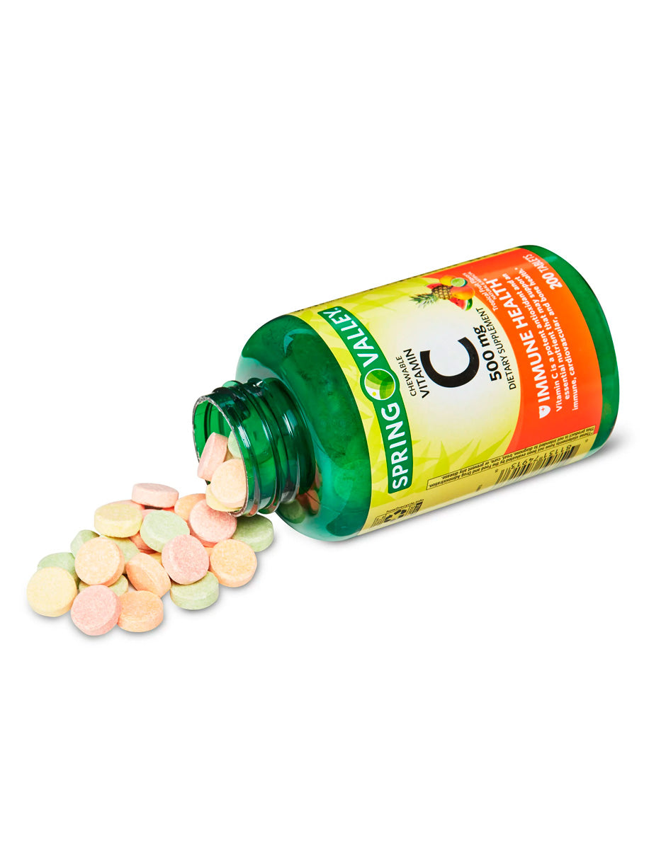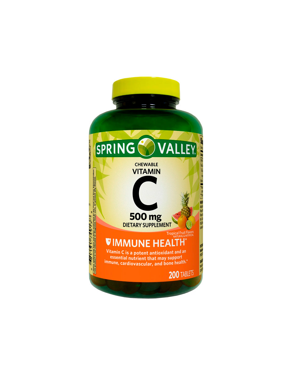 - Suplemento dietético de tabletas masticables de vitamina C Spring Valley, sabores de frutas tropicales, 500 mg, 200 unidades
