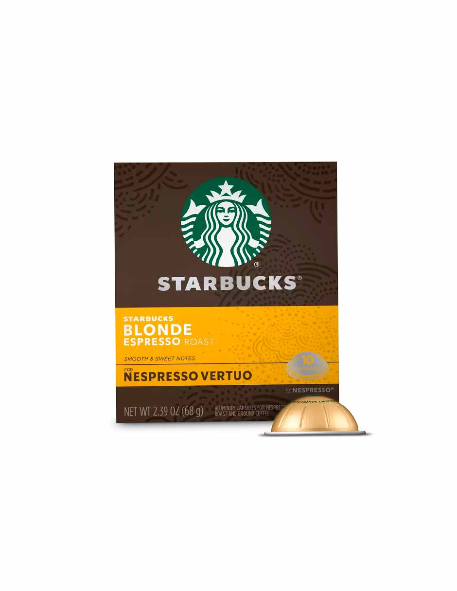 Disfruta del café Starbucks que amas con esta caja de 8 cápsulas espresso de café tostado rubio Starbucks Blonde Espresso Roast para máquinas Nespresso Vertuo