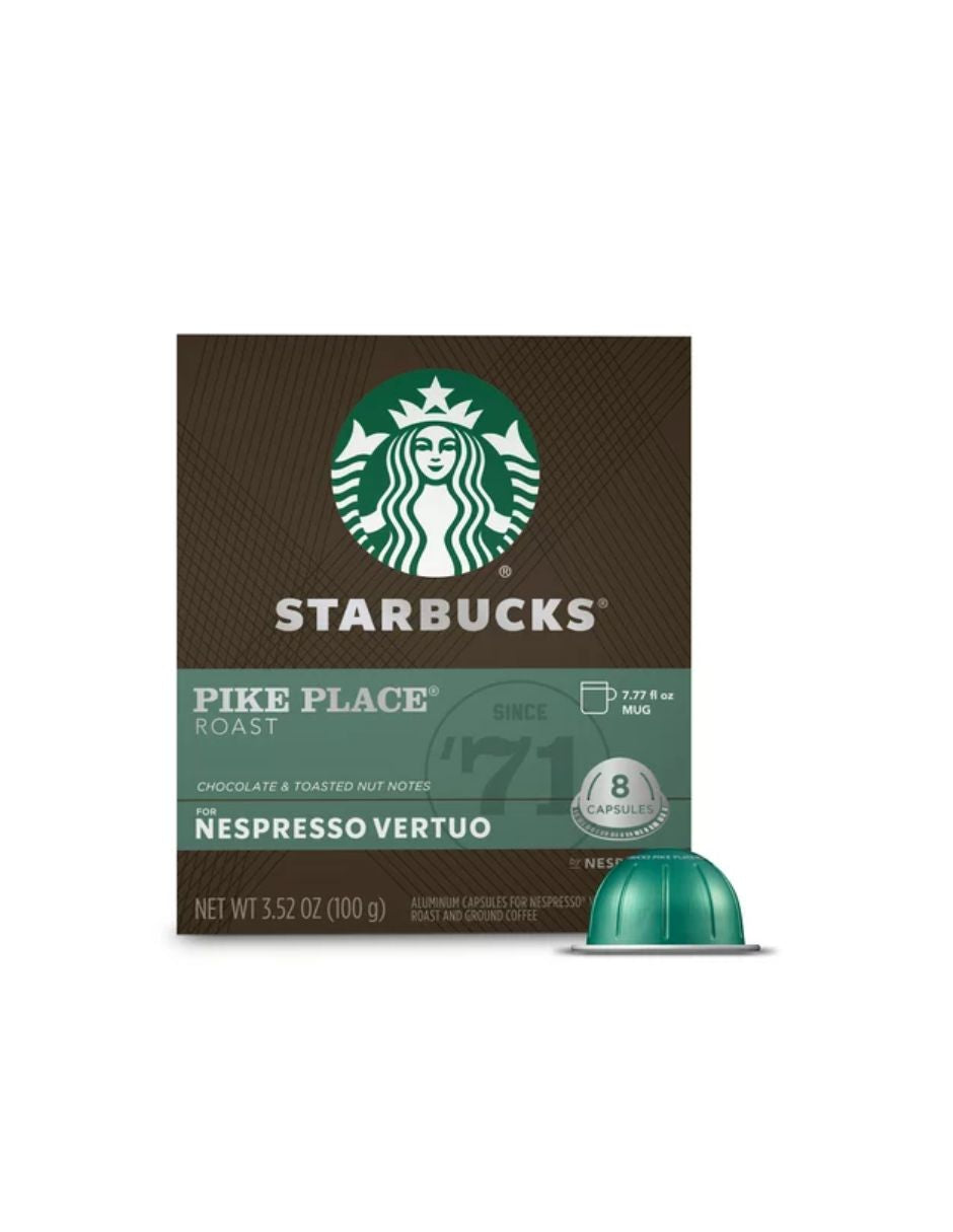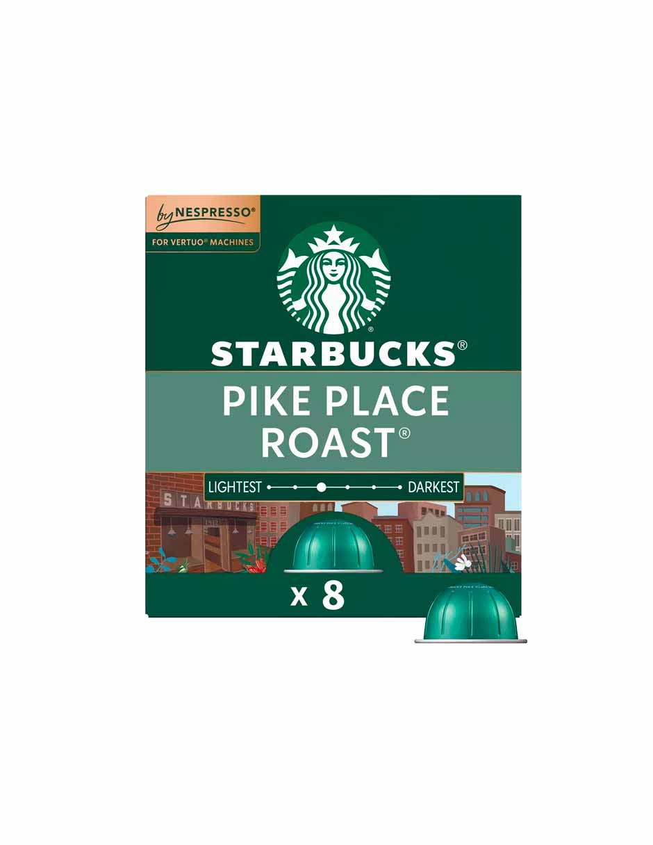- INCLUYE: Disfruta del café Starbucks que te encanta con una caja de 8 cápsulas de café tostado medio Starbucks Pike Place Roast para máquinas Nespresso Vertuo