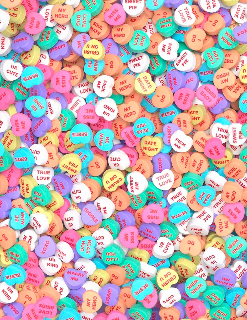 Refranes clásicos de San Valentín impresos en los corazones y refranes nuevos publicados cada año.