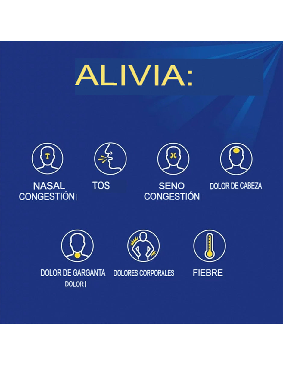 - Potente alivio de los síntomas del resfriado, como dolor de garganta, dolor de cabeza, dolores corporales menores, congestión nasal y sinusal, tos y fiebre.