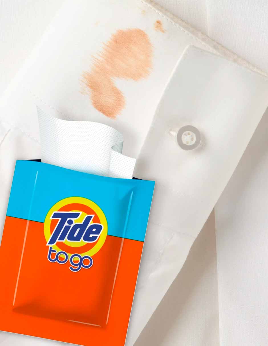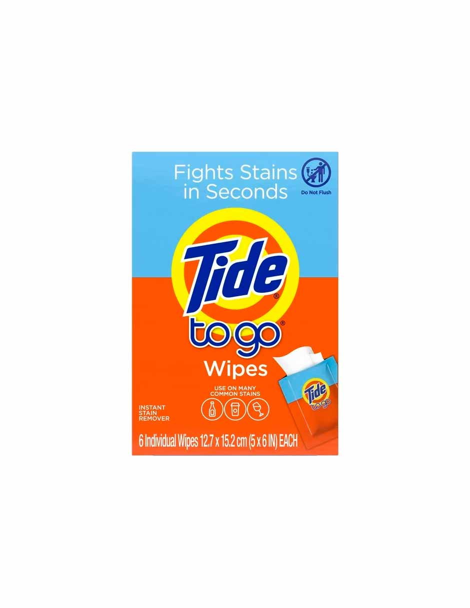 Las toallitas Tide To Go Wipes son nuestra mancha instantánea más conveniente para emergencias de manchas comunes como café, vino, ketchup, salsa o jugo. Seguro de usar en la mayoría de las telas ya que no contienen lejía. Cada toallita de tela está envuelta individualmente y es fácil de desechar para que no tengas que preocuparte de que se seque. Perfecto para guardar en el coche o en la oficina. Las toallitas antimanchas Tide To Go son ultraportátiles y caben fácilmente en el bolsillo, la cartera o la cartera. Fácil de usar. Seca la mancha con Tide To Go Wipes trabajando desde el exterior de la mancha hacia el centro. Si es necesario, el exceso de tinte primero. No olvides enjuagarte las manos una vez que hayas terminado.