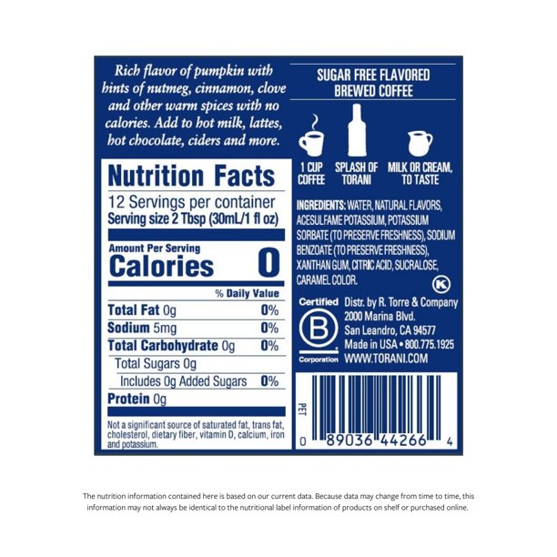 Torani Jarabe de café sabor Pumpkin spice sin azúcar 12.7 oz