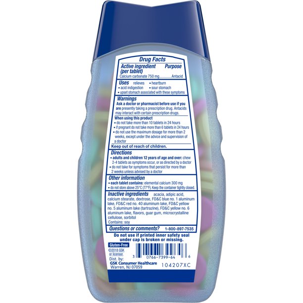 Las tabletas antiácidas masticables extra fuertes de frutas surtidas TUMS Smoothies comienzan a funcionar en segundos, para que pueda olvidar su acidez estomacal y volver a los momentos que importan. Los TUMS Smoothies Extra Strength contienen 750 mg de carbonato de calcio de origen natural, que combate rápida y eficazmente la acidez estomacal y alivia la acidez estomacal, la indigestión ácida y el malestar estomacal asociado con estos síntomas. De hecho, TUMS Smoothies Extra-Strength proporciona un 50 % más de poder para combatir el ácido por tableta que TUMS Regular Strength. Además, ¡saben genial! Estas tabletas antiácidas masticables de sabor suave y delicioso con sabor a frutas variadas neutralizan el ácido al contacto, brindándole un alivio rápido y extrafuerte de la acidez estomacal. ¿Se pregunta si los antiácidos masticables TUMS Smoothies pueden aliviar las náuseas? Mientras que el malestar estomacal y las náuseas a veces se asocian con síntomas como acidez estomacal, acidez estomacal, e indigestión ácida, las náuseas también pueden ser causadas por otras condiciones que los productos TUMS no están indicados para tratar. Si tiene náuseas, hable con su médico acerca de cuál podría ser la causa.