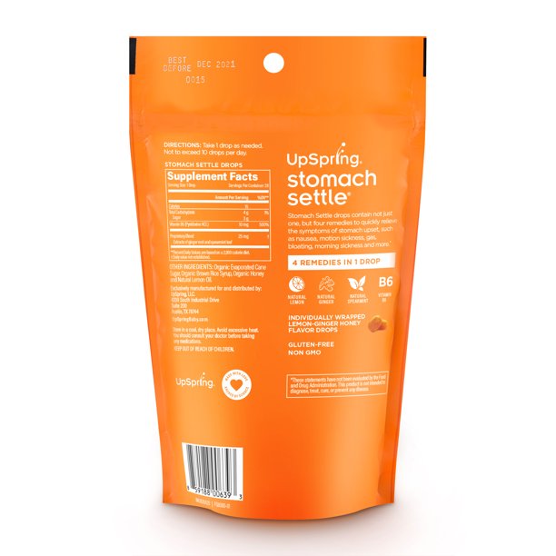 Upspring dulces para aliviar el mareo sabor miel de limón y jengibre, 28 unidades