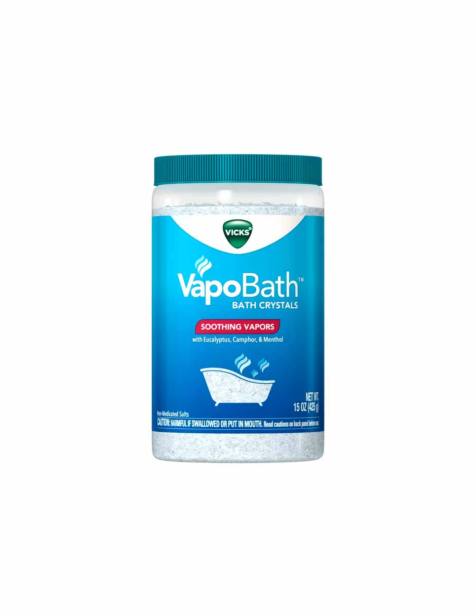 Deja que el relajante aroma de Vicks cree un pequeño escape cuando lo necesites y en solo 15 minutos podrás volver a sentirte como tú mismo. Con una infusión de una mezcla patentada de eucalipto y aceites esenciales + aromas de mentol y alcanfor, Vicks VapoBath ofrece vapores calmantes no medicinales para la mejor experiencia a la hora del baño, para que pueda relajarse y descansar.