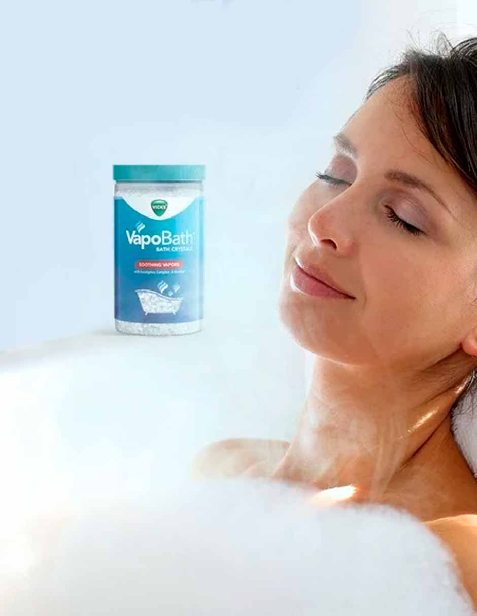 Respire con vapores Vicks no medicinales para disfrutar del mejor baño.