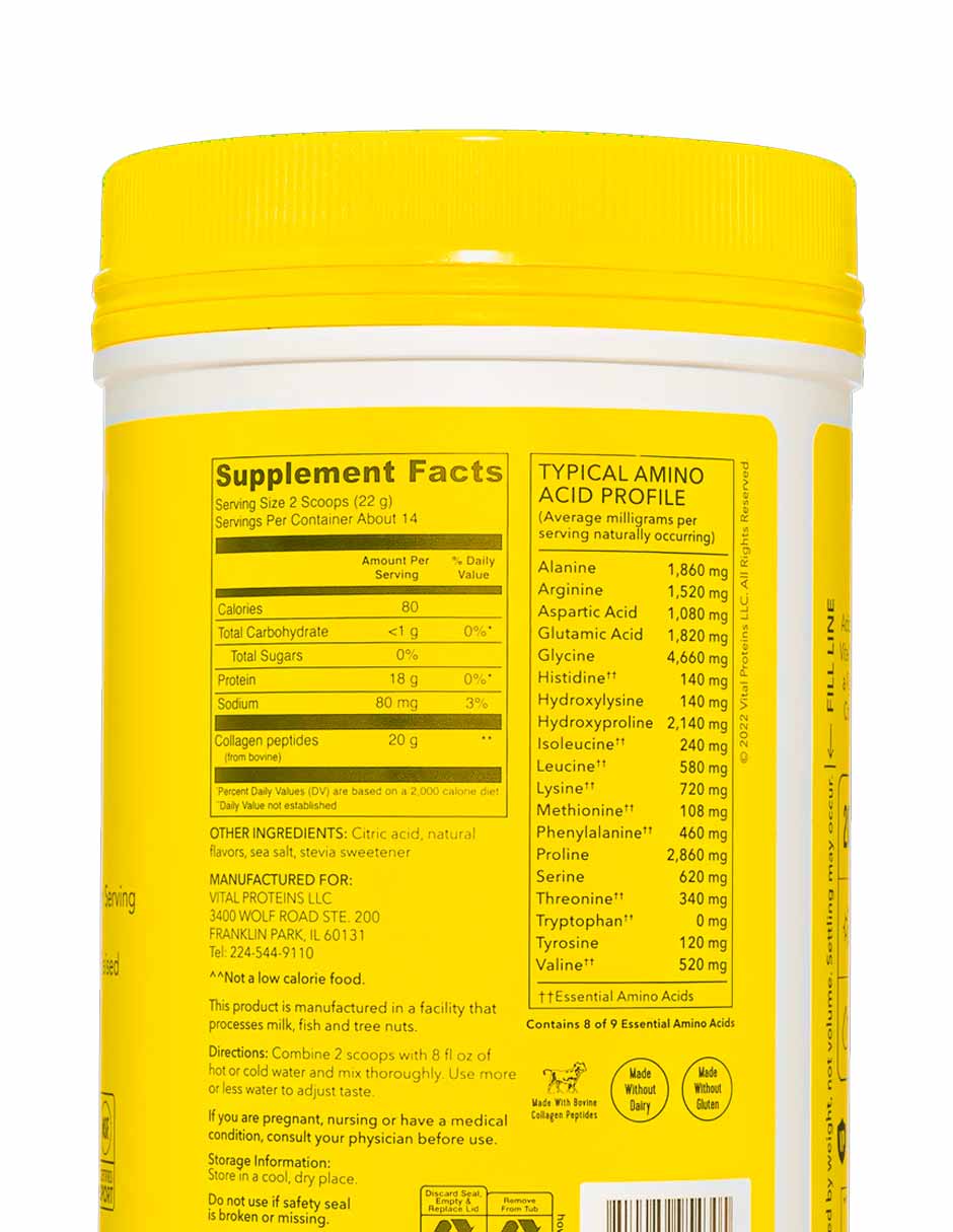 Vital Proteins Suplemento de péptidos de colágeno en polvo, limón, 313gr